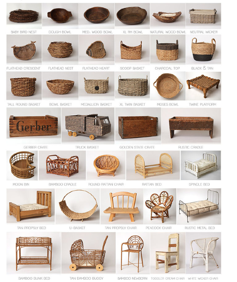 After years of collecting and curating, we have gathered a variety of props and accessories that are used to complement our Los Angeles newborn, family and milestone photo sessions. Please feel free to pick out anything that you see in our catalog to help design and create your one-of-a-kind images! I encourage you to browse our portfolio gallery HERE to see how backgrounds and props have been mixed and matched by our families. If you need help and suggestions, please don’t hesitate to ask.